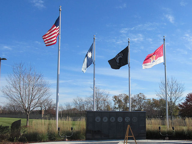 Pavers, and the array of National, State, and Military Service flags.