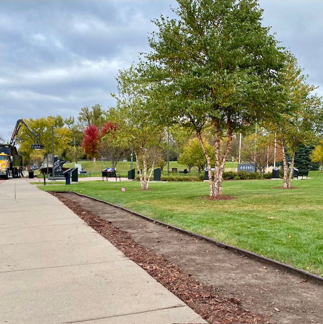 “Veterans Park is undergoing a shrubbery replacement plan in 2025-2026. The original Ninebark shrubs were getting weather worn and bare in places. An agreement between the Veterans Park Committee and the North St. Paul Public Parks will replace the present Ninebark border hedge with new plantings of Arrowood Viburnum for added color and durability in Spring 2026. Stay tuned”.